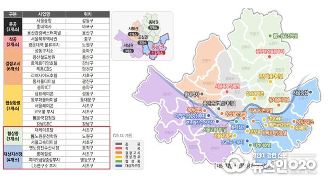 그 밖에도 ▴서초 롯데칠성 ▴동여의도 주차장부지 ▴LG전자연구소 ▴옛 노량진수산시장 등 사업성과 공공성을 모두 갖춘 신규 사전협상 대상지도 올해 협상을 앞두고 있다.