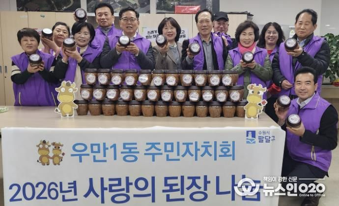 강경수 우만1동 주민자치회장은 “1년 동안 정성껏 숙성시킨 된장을 이웃과 나눌 수 있어 매우 뜻깊게 생각한다”며 “앞으로도 전통문화를 계승하고 따뜻한 나눔을 실천하는 주민자치회가 되도록 노력하겠다”고 말했다.