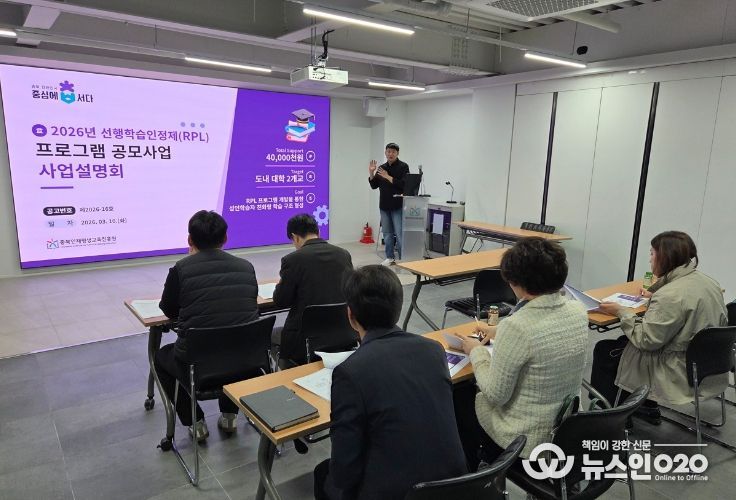 (뉴스인020 = 김성길 기자) 충북인재평생교육진흥원은 3월 10일에 충북인평원 대회의실에서 2026년 선행학습인정제(RPL) 프로그램 공모사업의 사업설명회를 개최했다.