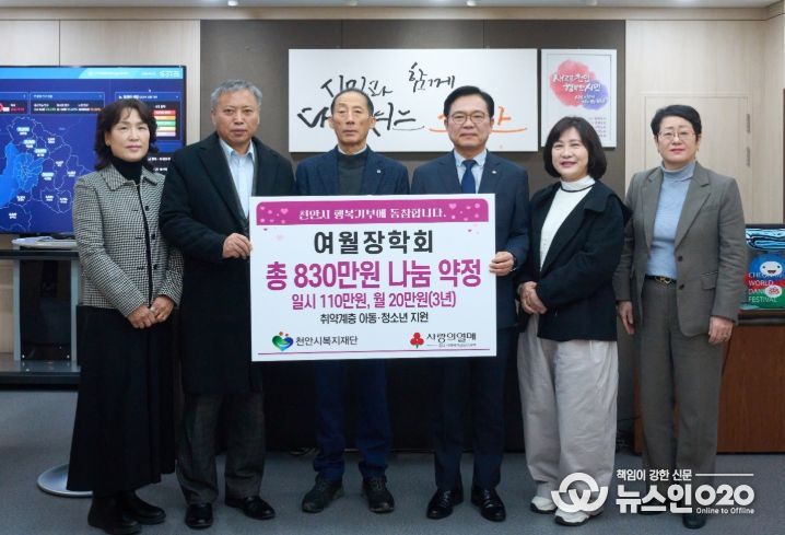 (뉴스인020 = 김성길 기자) 천안시복지재단은 지난 10일 여월장학회가 저소득 아동·청소년을 위해 후원금 830만 원을 기탁했다고 밝혔다.