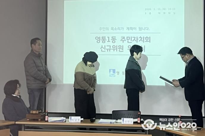 (뉴스인020 = 김성길 기자) 영통구 영통1동은 지난 10일 영통1동 행정복지센터에서 3월 월례회의를 열고 신규 위원 위촉식을 진행했다.