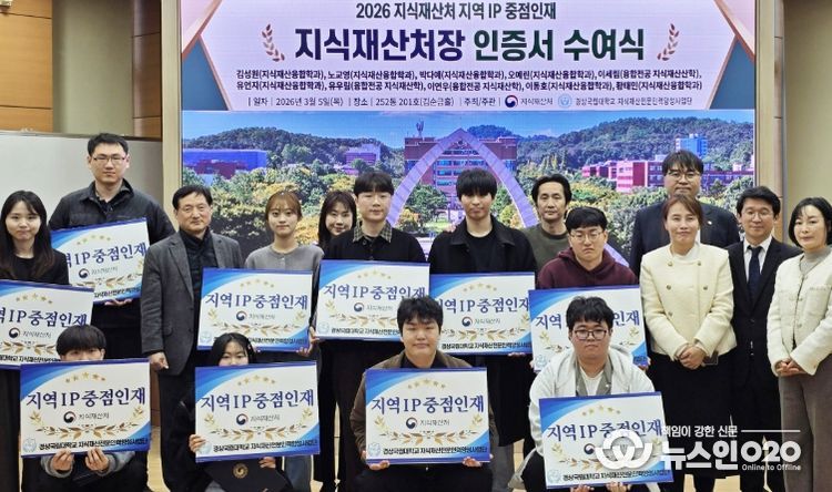 (뉴스인020 = 김성길 기자) 경상국립대학교지식재산전문인력양성사업단은 3월 5일 법과대학 김순금홀에서 지식재산 실무인재 양성을 위한 ‘지역 IP 중점인재’를 선발하고 인증서를 수여했다.