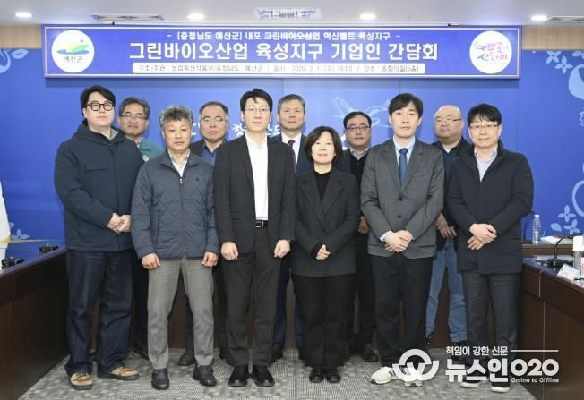 (뉴스인020 = 김성길 기자) 예산군은 지난 11일 군청 중회의실에서 농림축산식품부, 충청남도와 함께 ‘그린바이오산업 육성지구 기업인 간담회’를 개최했다.