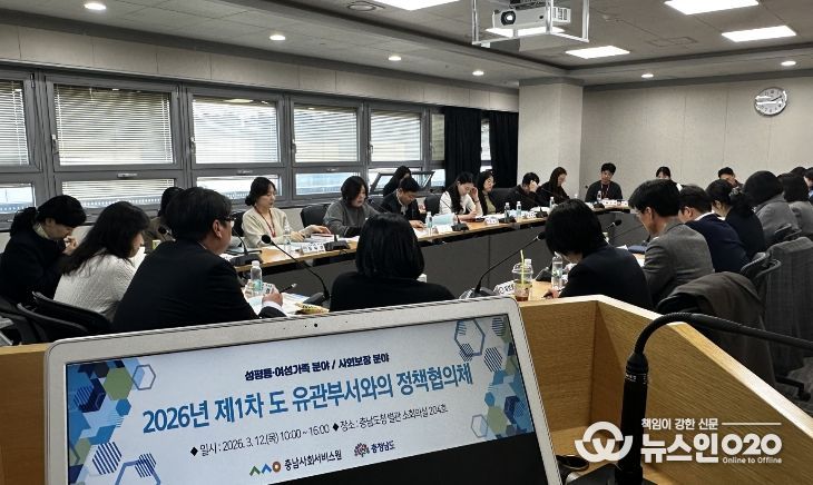 (뉴스인020 = 김성길 기자) 충남사회서비스원은 충청남도와 3월 12일 충남도청 별관 204호 회의실에서 ‘2026년 제1차 정책협의체’ 회의를 개최했다.