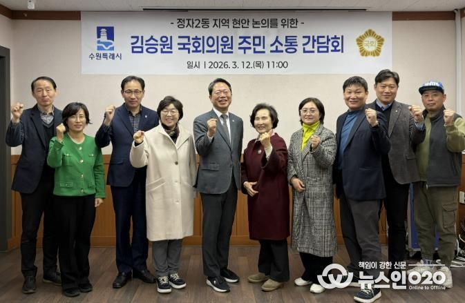(뉴스인020 = 김성길 기자) 수원시 장안구 정자2동 단체장협의회는 지난 12일, 지역 현안을 논의하고 마을 발전 방안을 모색하고자 김승원 국회의원과 함께 주민 소통 간담회를 개최했다.