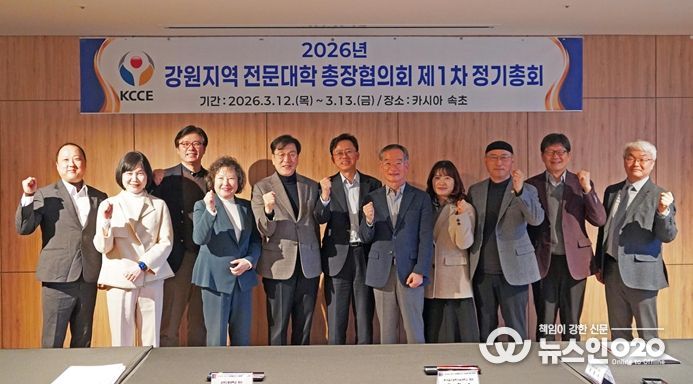 (뉴스인020 = 김성길 기자) 강원특별자치도 전문대학 총장협의회는 3월 12일부터 13일까지 양일간 속초 카시아호텔앤리조트에서 ‘2026학년도 제1차 정기총회’를 개최하고, 지역사회와 대학의 상생발전 방안을 심도 있게 논의했다.