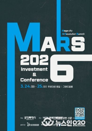 (뉴스인020 = 김성길 기자) 화성특례시가 주최하고 화성산업진흥원이 주관하는 ‘MARS 2026 투자유치&컨퍼런스’가 오는 3월 24일부터 이틀간 화성 푸르미르 호텔에서 개최된다.