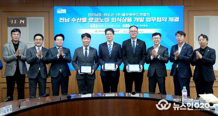 협약식에는 황기연 전남도지사 권한대행, 이범우 완도부군수, 김경순 ㈜풀무원푸드앤컬처 부사장이 참석해 상호 협력의지를 확인했다.