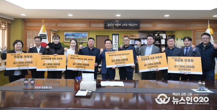 논산시 연합번영회는 취암동 번영회, 취암동 체육회, 루이까스텔 논산점, 라온웨딩홀, 한빛환경, NS댄스스튜디오 등 관내 단체와 업체의 뜻을 모아 장학금 700만 원을 마련했다.