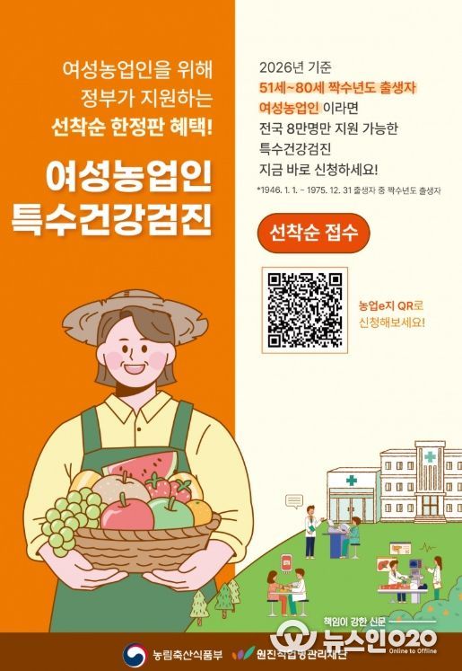 이 사업은 여성농업인을 대상으로 근골격계·심혈관계 질환 등의 질병을 조기에 진단하고, 전문의 상담 등을 통해 예방·사후 관리할 수 있도록 2년 주기로 검진받도록 돕는 사업이다.
