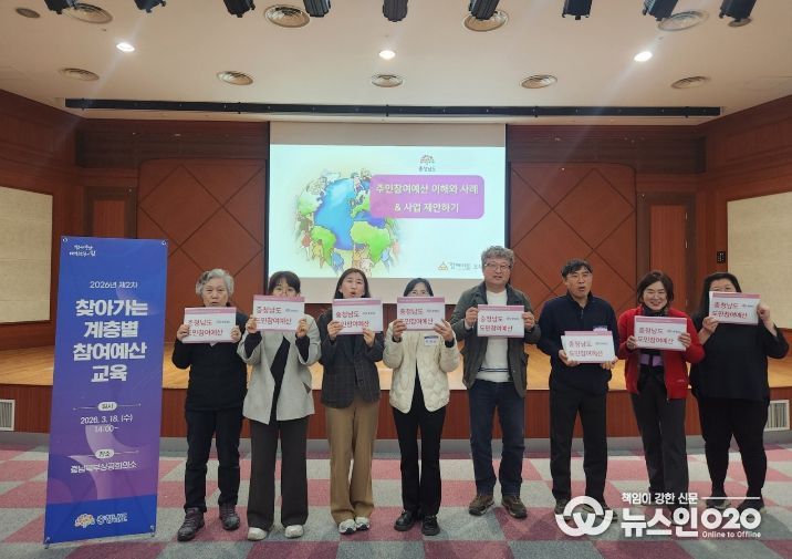 (뉴스인020 = 김성길 기자) 충남도는 18일 충남사회서비스원과 충남북부상공회의소에서 각각 도내 여성·아동 지원기관 종사자, 중소기업·소상공인·북부권 도민을 대상으로 ‘계층별 찾아가는 참여예산 교육’을 실시했다.