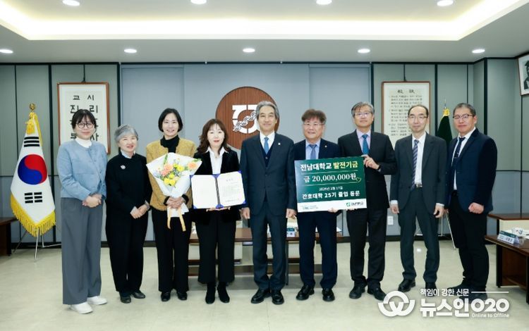 (뉴스인020 = 김성길 기자) 전남대학교 간호대학 졸업 25주년을 맞은 동문들이 홈커밍데이를 계기로 다시 모여 미래간호교육관 건립과 후학 양성을 위한 발전기금 2천만 원을 기부했다.