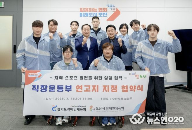 (뉴스인020 = 김성길 기자) 오산시장애인체육회장은 지난 18일 시청 시장실에서 경기도장애인체육회와 직장운동경기부 연고지 지정 협약을 체결하고 지역 스포츠 발전과 전문체육 활성화를 위한 협력체계를 구축했다고 밝혔다.