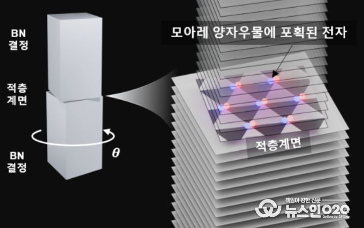 그간, 반데르발스 물질의 양자 현상 연구는 그래핀과 같은 원자층 두께의 박막 구조 중심으로 이뤄져 왔다. 그러나 이번 연구는 질화붕소 3차원 결정을 단순히 비틀어 적층하는 것만으로도 독특한 2차원 양자 우물 구조를 구현할 수 있다는 점에서 새로운 가능성을 제시했다.