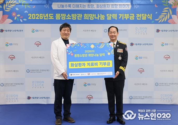 (뉴스인020 = 김성길 기자) 서울특별시 소방재난본부는 2015년부터 12년째 제작 중인 ‘몸짱소방관 희망나눔 달력’의 판매 수익금과 기부금을 모아 저소득 화상환자 치료 지원을 위한 기부금 전달식을 18일 개최했다고 밝혔다.