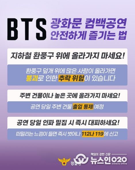 (뉴스인020 = 김나현 기자) BTS 광화문 컴백공연 안전하게 즐기는 법