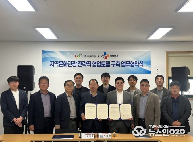 (뉴스인020 = 김성길 기자) (재)논산문화관광재단은 지난 19일 CJ대한통운 충청사업담당과 ‘지역 문화 관광 전략적 협업모델 구축’을 위한 업무협약(MOU)을 체결했다.
