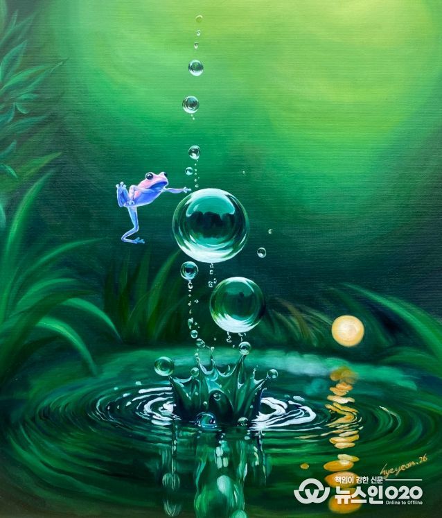 작가는 삶 속에서 멈춤과 준비의 시간을 지나 새로운 도약의 순간을 맞이하는 나를 개구리로 표현하였다.”라며 “작품을 감상하시며 각자의 개구리가 되어 조용히 도약하는 시간을 가져 보시길 바란다.”라고 말했다.