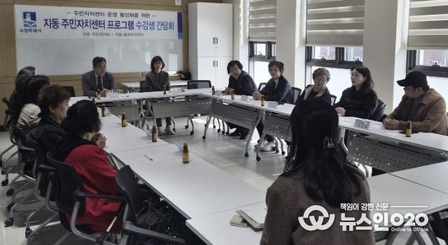 (뉴스인020 = 김성길 기자) 수원시 팔달구 지동 주민자치회는 지난 3월 23일 오전 11시, 지동 행정복지센터 소회의실에서 프로그램 수강생 간담회를 개최했다.