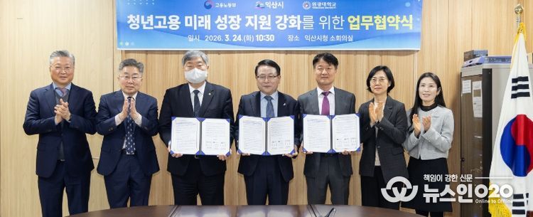 익산시는 고용노동부 익산지청, 원광대학교와 함께 24일 시청에서 '청년고용 미래 성장 지원 강화를 위한 업무협약'을 체결했다.