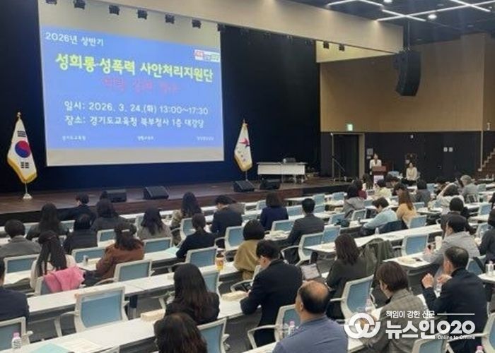 (뉴스인020 = 김성길 기자) 경기도교육청이 24일 북부청사에서 성희롱·성폭력 사안 처리의 현장 대응력과 전문성 강화를 위해 ‘2026 상반기 성희롱·성폭력 사안처리지원단 역량 강화 연수’를 운영했다.
