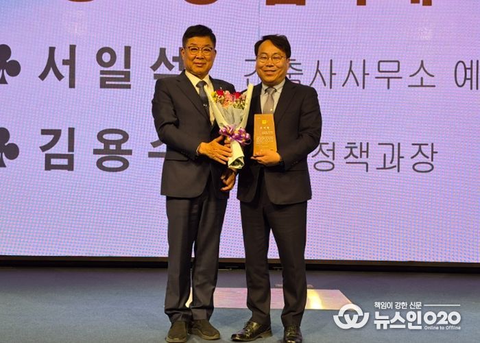 (뉴스인020 = 김성길 기자) 전북특별자치도는 김용수 건설정책과장이 건축행정 서비스 제고와 건축문화 진흥에 기여한 공로를 인정받아 대한건축사협회장 감사패를 수상했다고 24일 밝혔다.