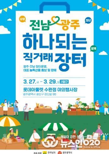 (뉴스인020 = 김성길 기자) 전라남도와 광주광역시는 27일부터 3일간 광주 롯데아울렛 수완점에서 ‘2026 전남·광주 하나되는 직거래장터’를 운영한다고 밝혔다.