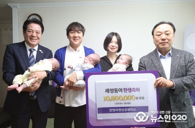 (뉴스인020 = 김성길 기자) 안양시와 안양과천상공회의소는 지난해 말 세쌍둥이를 출산한 동안구의 한 가정과 일곱째 자녀를 출산한 만안구의 한 가정을 축하 방문했다.