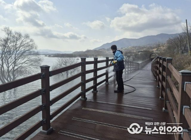 또한 겨울철 먼지와 오염으로 얼룩진 예당호 전망대 외벽을 세척하고 이용객 통행이 많은 느린호수길 데크 구간의 이물질을 제거하는 등 보행 환경 개선에도 힘썼다.