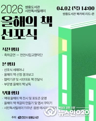 (뉴스인020 = 김성길 기자) 천안시 쌍용도서관은 내달 2일 시민독서릴레이 선포식을 연다고 27일 밝혔다.