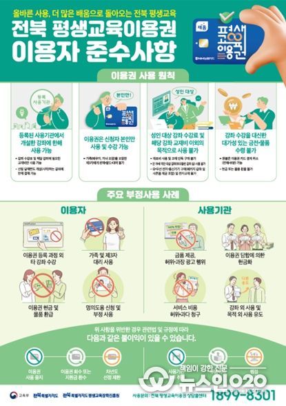선정된 이용자에게는 7일 이내 NH농협채움카드를 통해 연간 35만 원의 이용권 포인트가 순차 지급될 예정이며, 지급 즉시 오는 8월 말까지 도내 등록 교육기관에서 강좌 수강료로 활용할 수 있다.