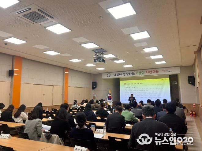 (뉴스인020 = 김성길 기자) 충청남도서산교육지원청은 3월 31일 오후 3시, 서산교육지원청 대회의실에서 관내 유·초·중·고·특수학교 교원 및 늘봄지원실장이 참석한 가운데 ‘2026 지혜나눔장학 담당자 협의회’를 개최하고 본격적인 현장 중심 장학 지원의 서막을 알렸다.