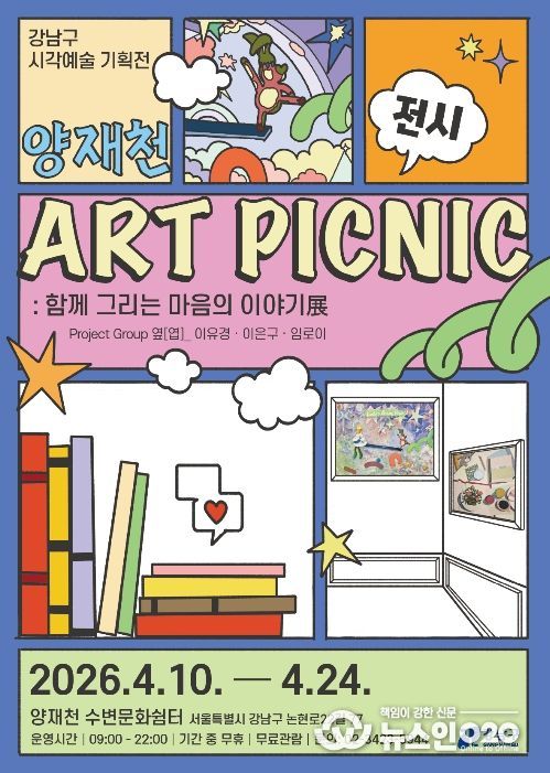 (뉴스인020 = 김성길 기자) 꿈이 모이는 도시, 미래를 그리는 강남구가 4월 10일부터 24일까지 양재천 수변문화쉼터에서 참여형 시각예술 기획전 ‘아트 피크닉(ART PICNIC) : 함께 그리는 마음의 이야기전’을 연다.
