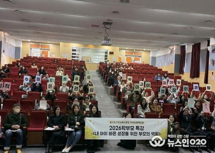 (뉴스인020 = 김성길 기자) 경기도수원교육지원청은 4월 2일 오전, 수원시 평생학습관 대강당에서 관내 학부모 200여 명이 참석한 가운데‘2026 학부모 특강’'내 아이 바른 성장을 위한 부모의 역할'을 성공적으로 개최했다고 밝혔다.