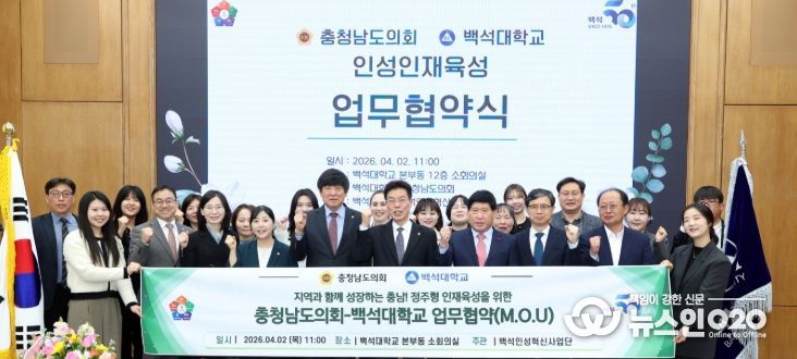 (뉴스인020 = 김성길 기자) 충남도의회가 백석대학교와 손을 잡고 지역사회 미래를 책임질 ‘인성 인재’ 양성을 위한 제도적 기반 마련에 나선다.