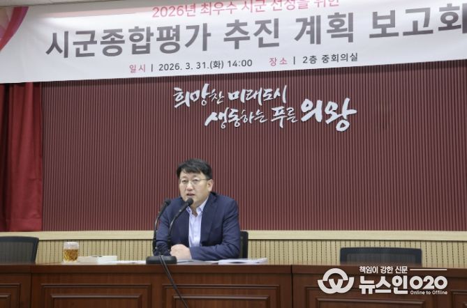(뉴스인020 = 김성길 기자) 의왕시는 지난 최근 시청 중회의실에서 부시장 주재로 ‘2026년 시군종합평가 추진 계획 보고회’를 개최하고, 최우수 시군 선정을 위한 대응 전략 마련에 나섰다.