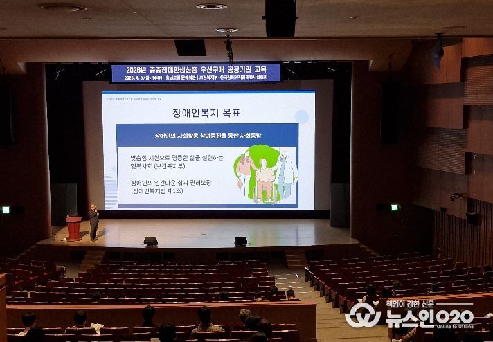 (뉴스인020 = 김성길 기자) 충남도는 3일 도청 문예회관에서 중증장애인 생산품 우선구매 관련 공공기관의 인식 제고 및 구매 독려를 위한 ‘2026년 공공기관 중증장애인생산품 우선구매 교육’을 실시했다.