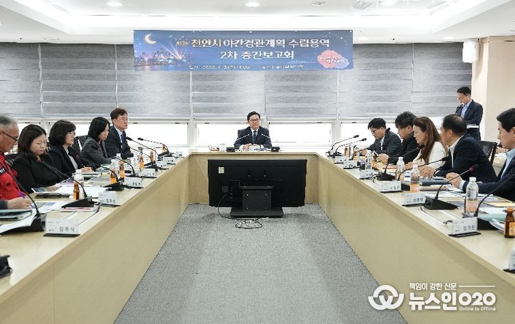 시는 3일 김석필 천안시장 권한대행 부시장을 비롯해 부서장 20여 명과 도시계획 및 조명디자인 분야 전문가들이 참석한 가운데 천안시 야간경관 계획 수립 용역 2차 중간보고회를 개최했다.