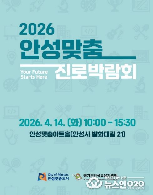 (뉴스인020 = 김성길 기자) 안성시는 오는 4월 14일 안성맞춤아트홀에서 관내 청소년들의 자기주도적 미래 설계를 지원하기 위한 ‘2026 안성맞춤 진로박람회’를 개최한다고 밝혔다.