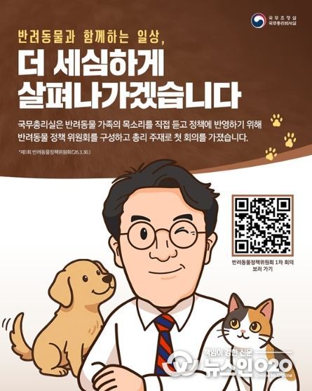 국무총리실은 반려동물 가족의 목소리를 직접 듣고 정책에 반영하기 위해 반려동물 정책 위원회를 구성하고 총리 주재로 첫 회의를 가졌습니다.