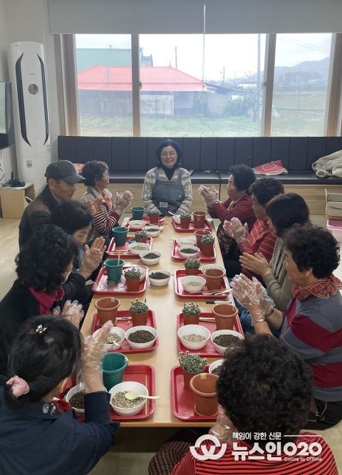 (뉴스인020 = 김성길 기자) 서천군은 지난 13일 한산면 죽동리 치매안심마을 주민들을 대상으로 치매예방을 위한 ‘다육화분 만들기’ 체험 프로그램을 운영했다.