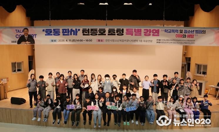 (뉴스인020 = 김성길 기자) 천안동남경찰서는, 신학기를 맞아 증가하는 학교폭력 및 청소년 범죄에 선제적으로 대응하기 위해 2026년 4월 11일 천안시청소년복합커뮤니티센터 대공연장에서 학생·학부모·교사 등 약 500여 명이 참석한 가운데 특별 강연을 개최했다.