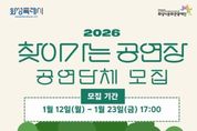 (뉴스인020 = 김성길 기자) (재)화성시문화관광재단은 1월 12일부터 1월 23일까지 ‘2026 찾아가는공연장’ 참여 공연단체를 모집한다고 밝혔다. ‘찾아가는 공연장’은 화성시의 곳곳에서 다양한 장르의 공연을 제공함으로써 시민들의 일상적인 문화예술 관람을 돕기 위한 사업으로, 2009년부터 시작된 화성시문화관광재단의 대표 문화사업 중 하나다. 지난 2025년도에는 공개 모집을 통해 40개의 공연단체를 선정했으며, 문화취약계층에 방문공연, 공원 광장 거리공연 등을 통해 다양한 장르의 공연으로 화성시민과 함께했다. ‘2026 찾아가는 공연장’은 약 140회차의 공연을 목표로 운영된다. 이번 공연단체 모집은 3년 이상의 공연활동 경력이 있는 공연단체라면 지역, 장르에 상관없이 신청가능하다. 접수는 1월 12일부터 23일까지 온라인으로만 가능하며, 1차 서류‧영상 심사, 2월 9일~10일 2차 실연‧면담 심사를 거쳐 2월 12일에 최종 선정단체 총 35팀을 발표할 예정이다. 화성시문화관광재단 안필연 대표이사는 “지역과 장르의 제한을 두지 않는 만큼, 화성시 곳곳에서 재능을 뽐내줄 다양한 예술 공연단체들의 많은 관심