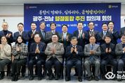 (뉴스인020 = 김성길 기자) 전라남도와 광주광역시는 12일 나주 전남연구원에서 제1호 광역통합 지방정부 출범을 향한 민관합동 실무기구인 광주·전남 행정통합 추진협의체 첫 회의를 열어 특별법과 시도민 의견수렴, 공론화 방안 등을 논의했다. 광주·전남 행정통합 추진협의체는 광주·전남 각계 대표 20명으로 구성됐다. 당연직 공동위원장으로 강위원 전남도 경제부지사와 김영문 광주시 경제문화부시장이, 민간 공동위원장으로 전남에선 조보훈 전 산업단지공단 부이사장, 광주에선 정영팔 광주지방시대위원장이 각각 맡기로 했다. 협의체 위원은 두 시·도의회, 시군구의회, 기초자치단체장, 경제·사회단체, 교육·문화계 대표 등 광주·전남에서 각각 8명씩 참여했다. 이날 회의에선 김영록 전남도지사와 강기정 광주시장, 시·도 협의체 위원 등 30여 명이 참석한 가운데 9일 청와대 오찬간담회 결과를 보고하고, 시·도민 의견수렴과 공론화 방안, 행정통합 특별법안 등을 논의했다. 전남도와 광주시는 지난 2일 ‘광주·전남 대부흥’의 새 역사를 열기 위한 대통합 공동선언을 발표하고, 행정 지원을 위한 추진기획단 구성·운영