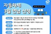 (뉴스인020 = 김성길 기자) 천안시 동남구는 내달 16~ 31일 자동차세 연납 신청을 받는다고 27일 밝혔다. 매월 6월과 12월 정기적으로 부과되는 자동차세를 미리 납부하면 세금 할인 혜택을 받을 수 있다. 3월에 연납 신청할 경우 4~ 12월에 대한 세액의 5%(연세액의 약 3.7%)를 공제받을 수 있다. 신청 대상자는 천안시 동남구에 등록된 모든 차량 소유자로, 기간 내에 신청해야 할인 혜택을 받을 수 있다. 신청은 구청 세무과·읍면동 행정복지센터 방문, 전화, 위택스를 통해서 가능하다. 납부는 전국 모든 은행 CD/ATM, 위택스·인터넷지로, 가상계좌 이체 중 편리한 방법으로 하면 된다. 한익희 세무과장은 “지난달 연납 신청 기회를 놓친 시민분들께서는 3월 신청 기간을 적극 활용해 세금 절감 혜택을 누리시길 바란다”고 말했다.