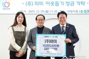 (뉴스인020 = 김성길 기자) 안양시는 지난 29일 ㈜미미로부터 이웃돕기 성금 1천만원을 기탁받았다고 30일 밝혔다. 이날 시청 접견실에서 열린 성금 전달식에는 최대호 안양시장과 조인주 ㈜미미 회장, 조예서 전무 등이 참석했다. ㈜미미는 만안구 덕천로에 소재한 기업으로 용역·청소·경비·주택업·건물종합관리 등 다양한 분야에서 사업을 운영하고 있으며, 지역사회 나눔과 사회공헌 활동에도 꾸준히 동참하고 있다. 이번에 기탁된 성금은 안양시 이웃돕기 성금으로 사용되며, 저소득층 건강보험료 지원과 취약계층 물품 지원 등 관내 어려운 이웃을 돕는 데 활용될 예정이다. 조인주 회장은 “지역사회로부터 받은 사랑을 다시 이웃과 나누고자 성금을 기탁하게 됐다”며 “작은 정성이지만 어려운 분들께 도움이 되기를 바란다”고 전했다. 최대호 안양시장은 “연말을 맞아 따뜻한 나눔을 실천해 주셔서 감사드린다”면서 “성금은 저소득층과 취약계층 등 도움이 절실한 이웃들에게 투명하고 공정하게 전달하겠다”고 말했다.