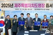 (뉴스인020 = 김성길 기자) 제주특별자치도는 지역산업 발전과 숙련기술의 전승에 기여한 ‘2025년 제주특별자치도 명장’을 선정하고, 30일 명장 증서와 현판을 전달했다. 올해 명장으로는 ▲건축설비 분야 이영호 ▲제과·제빵 분야 김철곤 ▲건축시공 분야 조환진 씨가 선정됐다. 이들은 15년 이상 현장 실무 경험을 바탕으로 축적한 높은 기술 완성도와 독보적인 숙련기술을 산업현장에 적용해 지역산업의 질적 성장을 이끈 공로를 인정받았다. 특히 기술 연마에 그치지 않고 청소년 진로 특강, 기술 재능기부, 사회공헌 활동 등을 통해 기술인의 사회적 책임을 실천하며 지역사회에 선한 영향력을 확산해 온 점도 높이 평가됐다. 선정된 명장에게는 명장 증서와 함께 사업장 홍보에 활용할 수 있는 명장 현판이 수여됐으며, 숙련기술 발전을 위한 기술장려금 1,000만 원이 5년간 분할 지급된다. 이날 제주도청 백록홀에서 열린 증서 수여식에는 명장 가족과 ㈔제주도명장회 오운자 이사장을 비롯한 선배 명장들이 참석해 후배 명장들의 새로운 출발을 축하했다. 참석자들은 오랜 시간 한길을 걸어온 명장들의 노고
