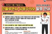 (뉴스인020 = 김성길 기자) 화순군은 질병관리청이 지난 17일 인플루엔자 유행주의보를 발령함에 따라, 호흡기 감염병 예방 수칙 준수 및 인플루엔자 예방접종을 당부했다고 23일 밝혔다. 질병관리청에 따르면 인플루엔자 의사환자 표본 감시 결과 의료기관에서 확인된 최근 4주간 의사환자 분율(외래환자 1,000명당)은 △38주 차 8.0명 △39주 차 9.0명 △40주 차 12.1명 △41주 차 14.5명으로 유행 기준(9.1명)을 이미 넘어섰으며, 지난해보다 약 2개월 이른 시점에 발령됐다. 연령대별로는 7~12세가 24.3명, 1~6세가 19.0명으로 나타나 전체 연령군 중 발생률이 가장 높았다. 유행주의보 발령 시 소아, 임신부, 65세 이상 고령자, 만성질환자 등 고위험군 대상 인플루엔자 의심 증상만으로 항바이러스제(타미플루캡슐 등, 리렌자로타디스크) 처방 시 건강보험 요양급여가 적용된다. 인플루엔자 바이러스는 독감을 일으키는 병원체로 주로 환자의 기침이나 콧물 등 호흡기 분비물을 통해 감염된다. 주요 증상은 고열, 기침, 인후통, 근육통 등의 증상을 동반하며, 특히 고령자·임신부,