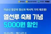(뉴스인020 = 김성길 기자) 보성군은 23일부터 예산 소진 시까지 ‘제1회 보성 열선루 이순신 역사문화축제’ 개최를 기념해 공공배달앱 ‘먹깨비’ 할인 이벤트를 실시한다고 밝혔다. 이번 행사는 축제 기간 지역경제 활성화와 소상공인 매출 증대를 위해 마련됐으며, ‘먹깨비’ 애플리케이션을 통해 1만 5천 원 이상 주문 시 1일 1회, 5천 원의 즉시 할인 혜택을 제공한다. 이용 방법은 스마트폰에서 ‘먹깨비’ 애플리케이션을 설치하고, 보성군 지역으로 설정한 뒤 참여 업소에서 쿠폰을 적용해 주문하면 된다. 군은 지난 5월 ‘보성통합축제’ 기간에도 먹깨비 할인 이벤트를 운영해 군민과 관광객으로부터 호응을 얻은 바 있다. 이번에도 축제와 연계한 실질적 소비 혜택 제공은 물론, 공공배달앱 활성화에 이바지할 것으로 기대된다. 한편, ‘2025 보성 열선루 이순신 역사문화축제는’ 10월 24일부터 26일까지 보성 열선루 공원 일원에서 개최되며, ▲국가유산야행, ▲제2회 다~청년페스티벌, ▲제13회 보성세계차박람회, ▲제3회 대한민국 차나무 분재대전, ▲전남 우수 분재 대전 등 다양한 프로그램이 어