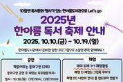 (뉴스인020 = 기자) 수원시청소년청년재단 수원청소년문화센터 한아름도서관은 2025. 독서의 달을 기념하여‘한아름독서축제’를 10월 10일부터 10월 19일까지 운영한다. 이번 독서축제는 △스피치 강사와 함께하는 북토크 강연 △동화구연 공연 △재미 두배 1+1 체험활동 △원화 명화 전시 △도서관 이용자 대출 이벤트 등 청소년과 지역주민이 함께 공감하며 즐길 수 있는 다양한 프로그램으로 구성했다. △스피치 강사와 함께하는 북토크 강연 △동화구연 공연은 사전접수를 통해 참여가 가능하며, 재미 두배 1+1 체험 활동은 별도 접수 없이 현장에서 선착순 참여로 가능하다. 참가비는 전액 무료이다. 사전접수는 10월 1일 수요일부터 선착순으로 모집하며, 신청 방법은 수원시청소년청년재단 홈페이지‘한아름독서축제’안내문의 QR코드로 접속하여 신청할 수 있다. 한아름도서관은 이번‘한아름독서축제’를 통해 청소년과 지역주민의 독서 문화를 장려하고 도서관 활성화를 도모하고자 한다.